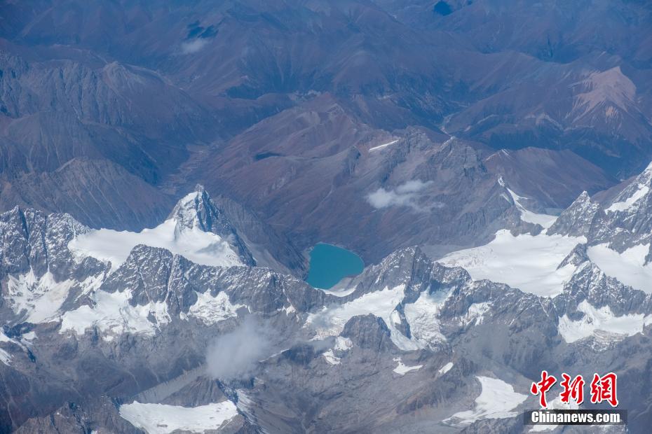 近日,記者從四川成都飛往西藏拉薩的航班上俯瞰青藏高原,一覽高原冰川、湖泊、河流等秀麗風(fēng)光。圖為10月14日,進(jìn)藏航班途徑冰川上方,冰川腳下為兩條冰舌。江飛波 攝