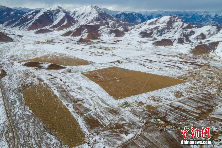2月23日,航拍西藏林周縣楚杰寺雪后風光。 澎波河是拉薩河的主要支流之一,位于拉薩市林周縣,是拉薩青稞主產(chǎn)區(qū)。近日,澎波河谷迎來大范圍降雪,河灘、農(nóng)田、村落、山谷等均被積雪覆蓋,猶如披上了一層“白紗”,一派高原冰雪風光,十分壯美。江飛波 攝