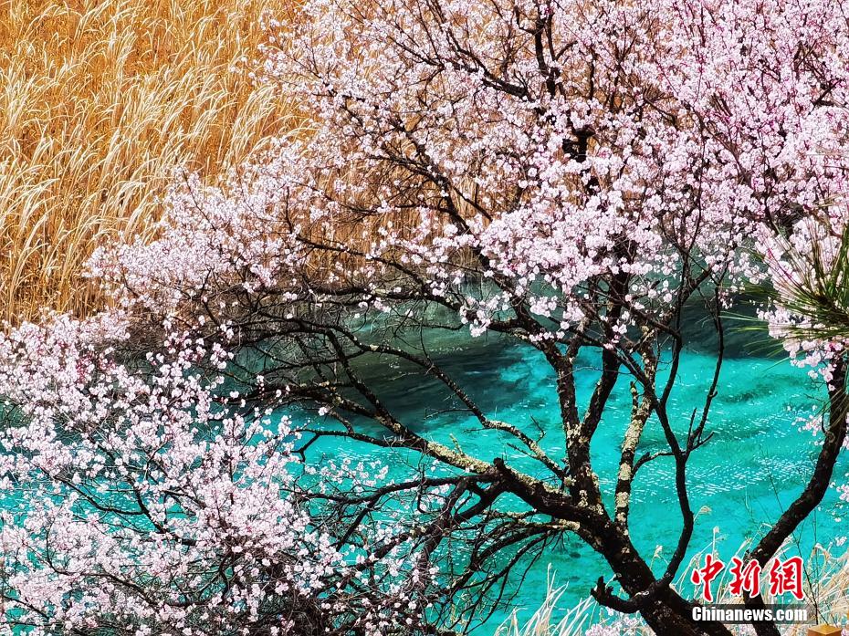 3月的九寨溝春回大地,暖陽怡人,遍布河谷、湖畔、山腰的九寨扁桃花迎風(fēng)綻放,花期正當(dāng)時(shí)。梁楓 攝