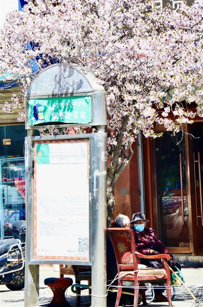 住在拉薩靠北邊的市民同樣能一飽眼福。娘熱北路兩側(cè)的榆葉梅已全部綻放,而緊鄰娘熱路的慈松塘中路和慈松塘東路更是一片春花爛漫的美好景象。慈松塘中路和北路的榆葉梅栽種較為密集,成團(tuán)成簇的淡粉色花朵擠在枝頭,樹(shù)下乘涼的老奶奶、樹(shù)邊停靠的公交車(chē),在花朵的加持下,隨手一拍便是故事感極強(qiáng)的畫(huà)面。