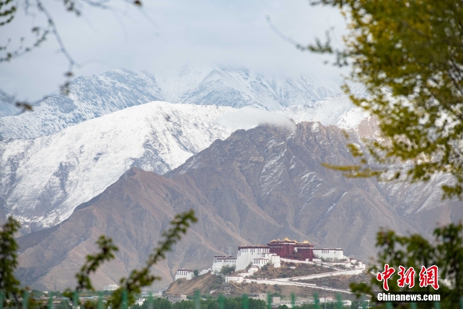 4月17日,拉薩迎來春雪。雪后,古城拉薩周邊被白雪覆蓋,景色宜人。 中新社記者 貢嘎來松 攝