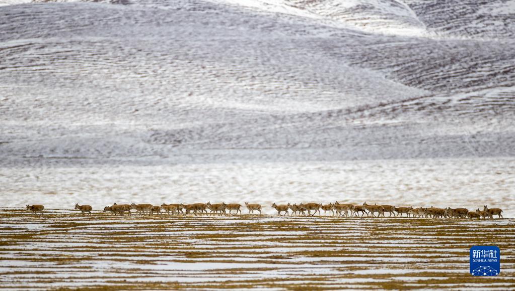 這是在羌塘國(guó)家級(jí)自然保護(hù)區(qū)那曲市雙湖縣區(qū)域內(nèi)拍攝到的藏原羚(4月16日攝) 。新華社記者 格桑邊覺 攝