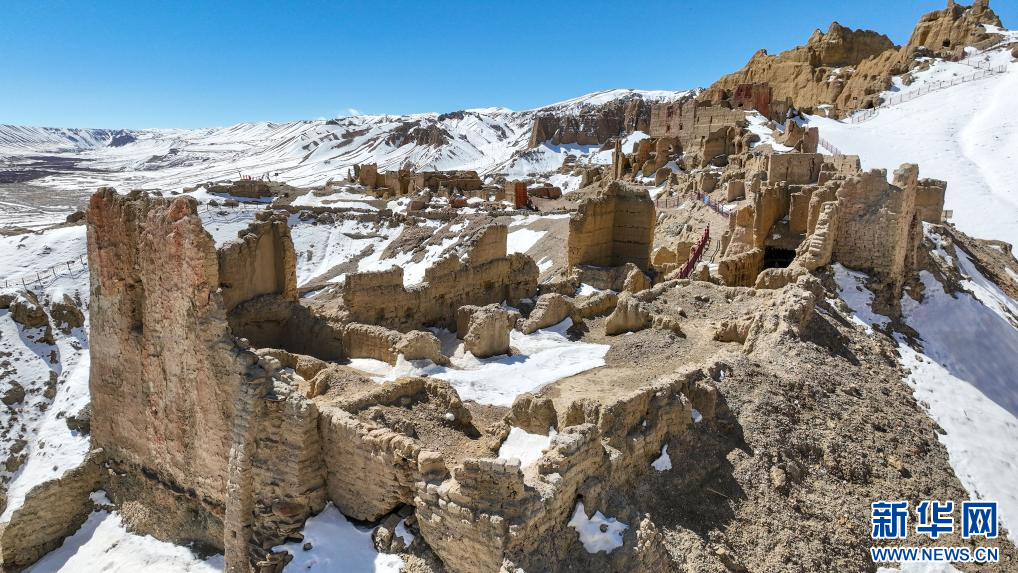 達(dá)巴遺址位于西藏阿里地區(qū)札達(dá)縣境內(nèi),其主要建筑分布在兩座山脊之上,整個遺址共有洞穴200余處,且有獨(dú)立的碉樓、寺廟建筑遺跡、居民窯洞等建筑,在白雪的映襯下,顯得格外雄渾而神秘。