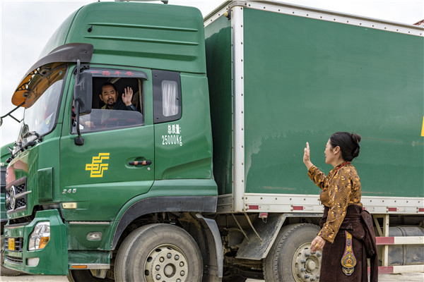 在兒子扎西澤翁眼里,阿爸不僅是同事,更是心中的英雄。每次出車前,妻子澤仁曲西都會(huì)為其美多吉送行。目送他離開后,還會(huì)為他祈福,祈求丈夫平安歸來。妻子為丈夫送行,這是雪線郵路上的家屬們長期形成的默契。圖片來源:中國郵電報(bào)