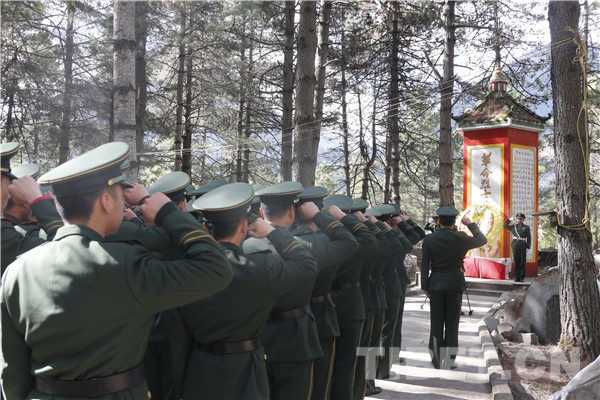 圖為駐通麥官兵緬懷“川藏線十英雄”。攝影:李志龍