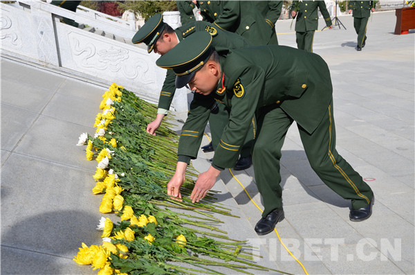 圖為駐拉薩官兵向革命烈士獻(xiàn)花。攝影:王闖