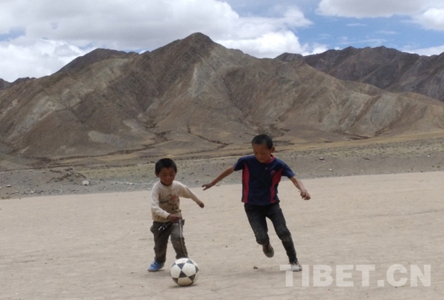 照片里個(gè)子最高的就是夏雜小小足球隊(duì)的隊(duì)長(zhǎng)——貢嘎扎西,本以為他會(huì)是足球隊(duì)的前鋒,誰知他卻是防守的中堅(jiān)力量——司職后衛(wèi)。今天他可解圍了不少威脅球。前排中間這個(gè)剛剛掉了右邊門牙的少年名叫多吉普拉,“別看我牙都沒長(zhǎng)齊,但我是前鋒”。在剛剛結(jié)束的這場(chǎng)夏雜村足球賽中獨(dú)中兩元,他就是夏雜村足球隊(duì)未來的“C羅”。這里——4100米海拔的“魔鬼主場(chǎng)”就是他們的主場(chǎng)。