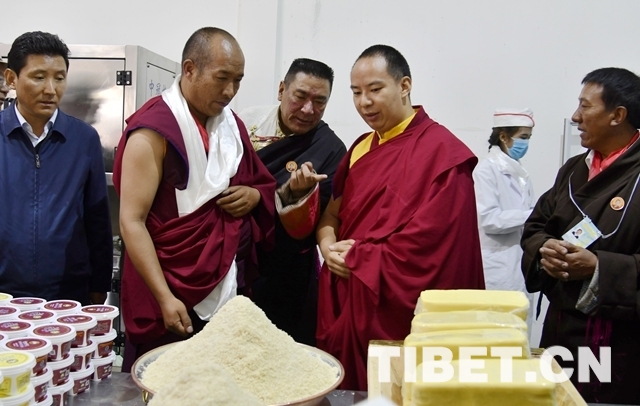 圖為十一世班禪參觀乳制品加工廠房。攝影:王淑