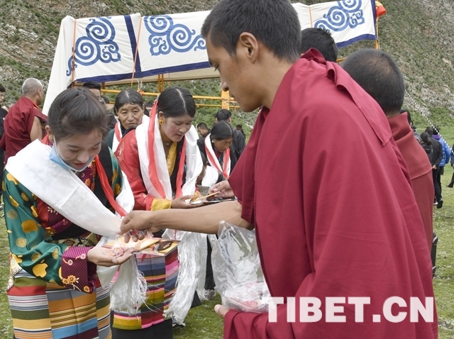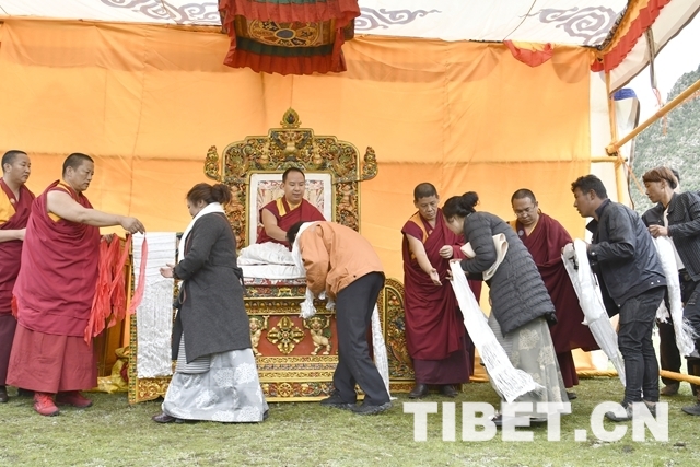當(dāng)?shù)匦沤倘罕娐?tīng)說(shuō)十一世班禪要來(lái)夏季牧場(chǎng)放牧點(diǎn),紛紛趕著牦牛和馬在此等候,希望能瞻禮到大師的尊榮,為自己帶來(lái)賜福和好運(yùn)。