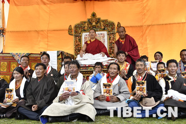 圖為十一世班禪為當(dāng)?shù)匦沤倘罕娒斮n福。攝影:王淑