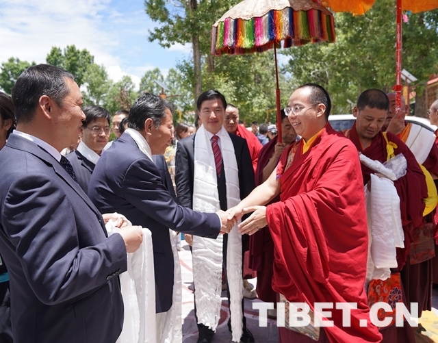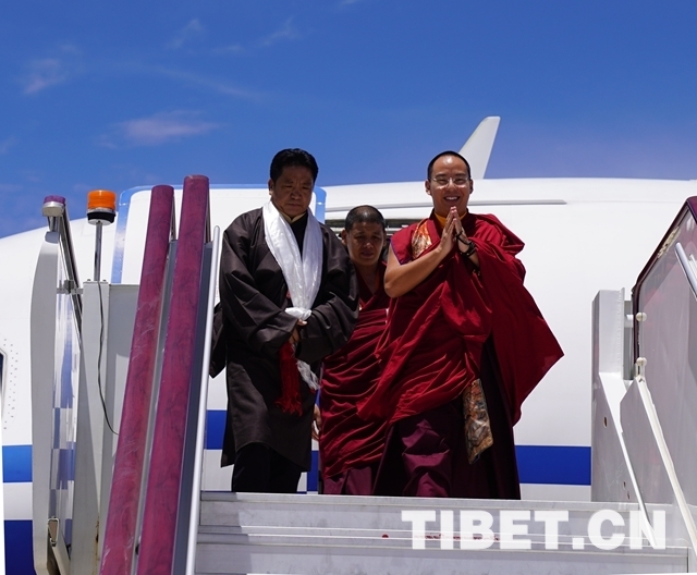 7月17日,十一世班禪乘坐的飛機抵達(dá)拉薩貢嘎機場時,西藏自治區(qū)黨委常委、統(tǒng)戰(zhàn)部部長旦科站在歡迎隊伍最前面迎接,敬獻(xiàn)哈達(dá),握手致禮,表達(dá)西藏自治區(qū)黨委、政府的歡迎。