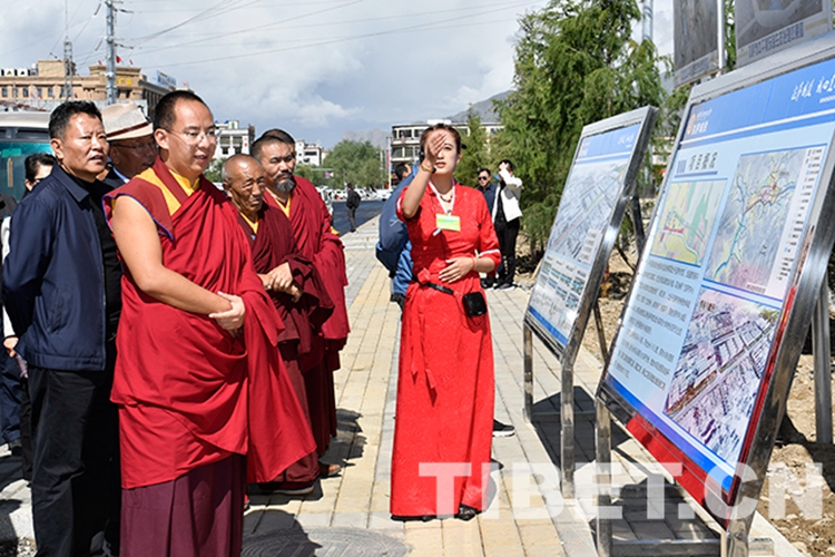 3)在西藏自治區(qū)高法小區(qū)前,十一世班禪參觀了城市生態(tài)水系修復(fù)試點項目施工現(xiàn)場。