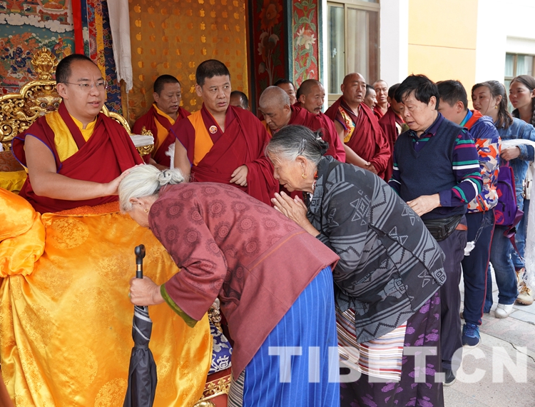 在隨后的朝拜過程中,十一世班禪兩次停下腳步,為在此等候的信眾賜福。