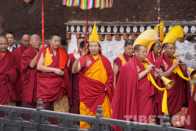 十一世班禪面帶笑容,緩步進入主殿。攝影:王媛媛