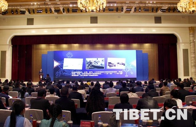 圖為拉薩市政府領(lǐng)導(dǎo)推介拉薩市投資環(huán)境和重點(diǎn)發(fā)展領(lǐng)域