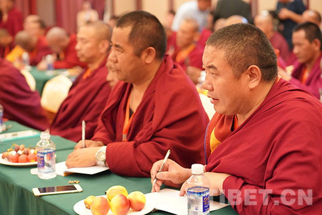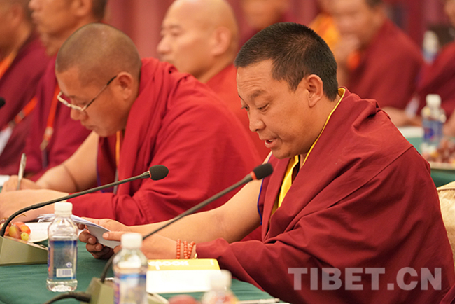 圖為山南市佛教協(xié)會會長達(dá)娃次仁發(fā)言。攝影:王淑