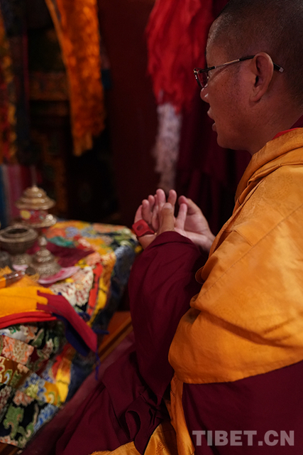 圖為十一世班禪朝拜珍珠唐卡殿。攝影:達娃