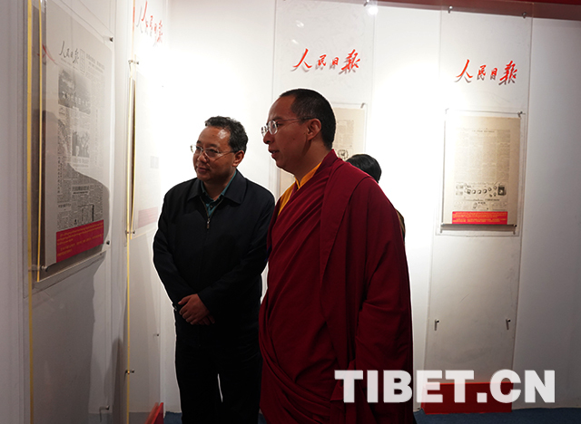 圖為十一世班禪參觀克松社區(qū)居委會(huì)陳列館。攝影:王淑