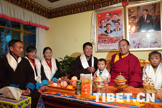 打掃庭院、布置藏式客廳、擺放各種水果和飲品……為了恭迎十一世班禪的到來(lái),達(dá)瓦一家一大早便忙碌起來(lái)。他說(shuō),“班禪仁波切來(lái)到我家,對(duì)于我們家來(lái)說(shuō)是歷史性的時(shí)刻,是我們?nèi)胰诵迊?lái)的福分?!?/p>