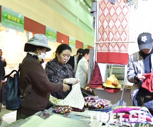 圖為市民在第十六屆中國(guó)西藏—尼泊爾經(jīng)貿(mào)洽談會(huì)上“淘寶”。攝影:王媛媛