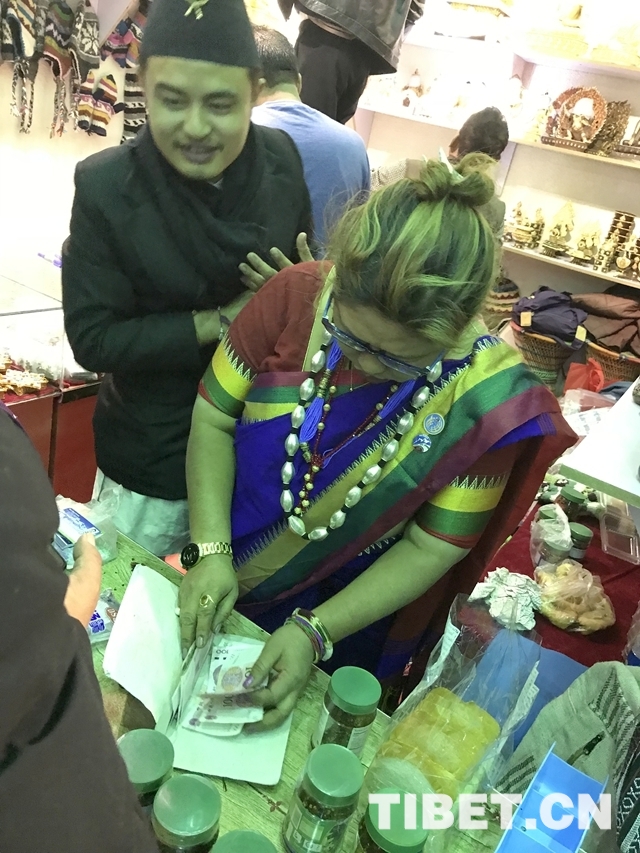 圖為尼泊爾參展商正在給顧客找零。攝影:王媛媛