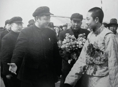 1951年4月中旬,習(xí)仲勛與十世班禪第一次會(huì)面。那時(shí),十世班禪率領(lǐng)班禪堪布會(huì)議廳官員赴京途經(jīng)西安,習(xí)仲勛作為西北局和西北軍政委員會(huì)主要負(fù)責(zé)人,到機(jī)場(chǎng)迎接。班禪走下飛機(jī)時(shí),一個(gè)眉清目秀、和善聰慧、舉止文雅、彬彬有禮的英俊藏族少年活佛形象,出現(xiàn)在習(xí)仲勛的眼前。在飛機(jī)舷梯下,十世班禪緊緊握住習(xí)仲勛的手,心情激動(dòng)地說:“我們是專程去北京向毛主席致敬的!我要把藏族人民對(duì)中央人民政府和毛主席的良好祝愿親口轉(zhuǎn)達(dá)給毛主席?!痹诋?dāng)晚歡迎會(huì)上,十世班禪表示堅(jiān)決擁護(hù)中央人民政府,決心與西藏各界愛國人士一道為西藏的解放和藏族人民的團(tuán)結(jié)努力奮斗?!坝兄静辉谀旮摺?,十世班禪的愛國熱情和坦誠豪爽的性格給習(xí)仲勛留下了深刻的印象。當(dāng)天,習(xí)仲勛把他接到西北局大院自己家中,十世班禪與習(xí)仲勛的大兒子習(xí)富平同齡,兩人很快就熟稔起來。