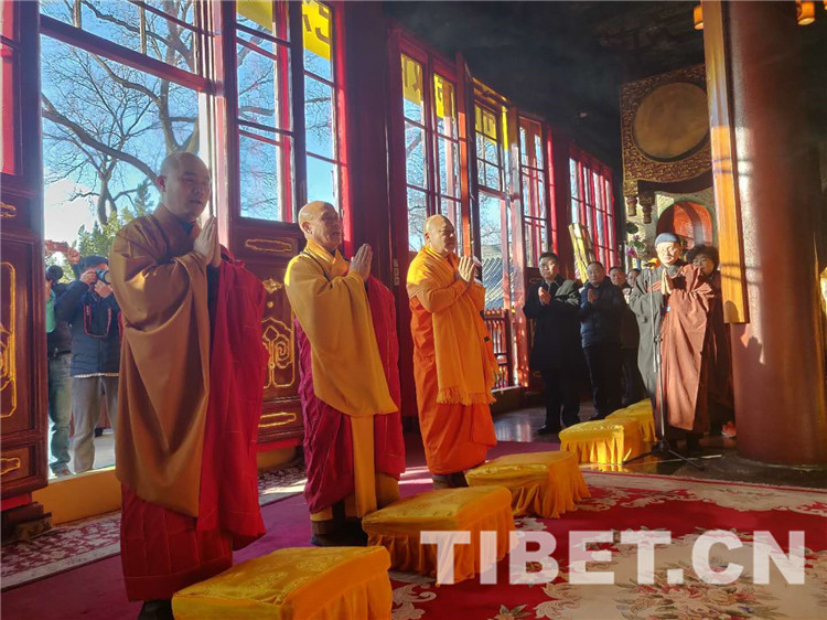 中國西藏網(wǎng)訊 古剎肅穆,佛閣莊嚴(yán);法號齊鳴,鼓罄聲聲。1月28日上午9時,北京西黃寺、廣濟寺、雍和宮內(nèi)經(jīng)幡獵獵、桑煙繚繞、僧眾云集,隆重舉行紀(jì)念十世班禪大師圓寂30周年法會,深切緬懷偉大的愛國主義者、著名的國務(wù)活動家、中國共產(chǎn)黨的忠誠朋友、中國藏傳佛教的杰出領(lǐng)袖——十世班禪額爾德尼?確吉堅贊。