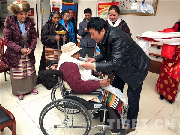 圖為貢扎曲旺看望敬老院的老人 圖片由受訪者提供