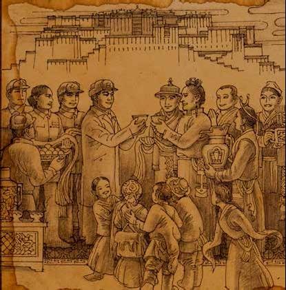 今天是春節(jié),恰好又是藏歷新年,是全家團圓的日子。但在西藏工作的同志,卻享受不到這種歡樂。大家比平時還要忙,我這個西藏軍區(qū)政治部群眾工作部的部長,比別人就更忙。從早上起床,就安排軍區(qū)首長和各部的領(lǐng)導(dǎo)同志,同西藏地方政府的官員,進行拜年活動,互相祝賀“洛薩,扎西德勒”(新年,吉祥如意)。各處都顯得異常熱烈和親切。