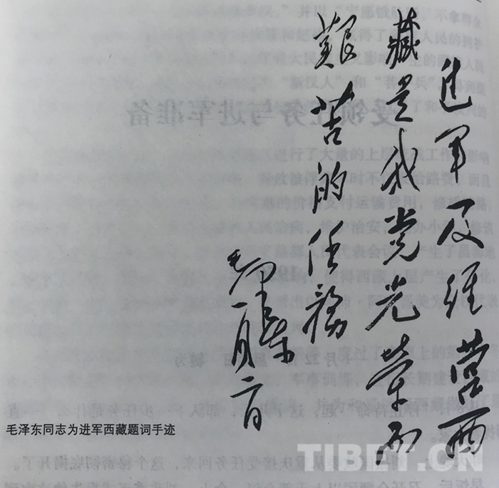 圖為毛澤東同志為進(jìn)軍西藏題詞手跡。翻拍:王媛媛