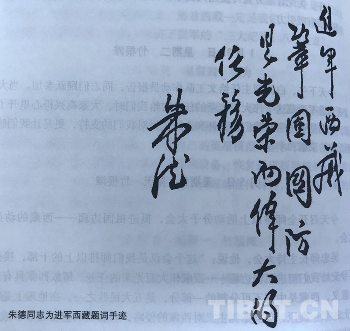 圖為朱德同志為進(jìn)軍西藏題詞手跡。翻拍:王媛媛