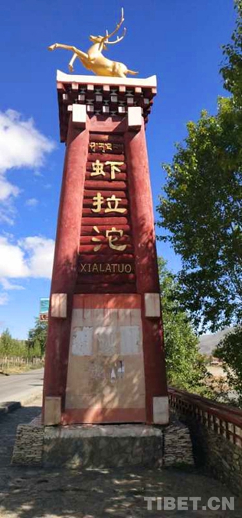 圖為蝦拉沱村村口標(biāo)志。