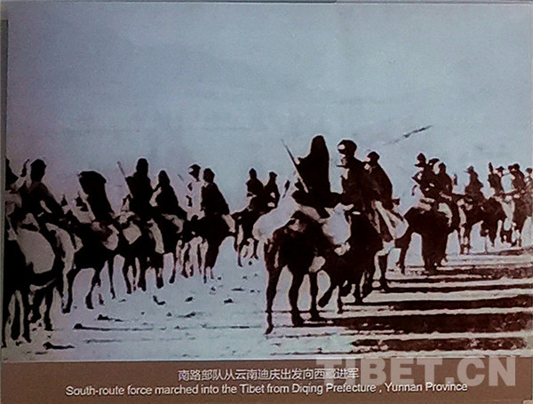 中國(guó)西藏網(wǎng)訊 1950年至1951年,云南省迪慶藏族自治州中甸(2001年易名香格里拉縣,2014年撤縣設(shè)市)、德欽縣、維西傈僳族自治縣三縣成為中國(guó)人民解放軍南路進(jìn)軍西藏的必經(jīng)要道,被確定為進(jìn)軍基地。期間,三縣投入大量的人力、畜力、物力,運(yùn)送糧秣及軍需至藏邊各駐軍點(diǎn),修筑麗江巨甸至德欽大石頭馬車路,建蓋德欽、西藏察隅軍營(yíng)、倉(cāng)庫(kù)等,圓滿完成了支援和平解放西藏的光榮任務(wù)。(中國(guó)西藏網(wǎng) 記者/王茜 圖片翻拍自迪慶紅軍長(zhǎng)征博物館)