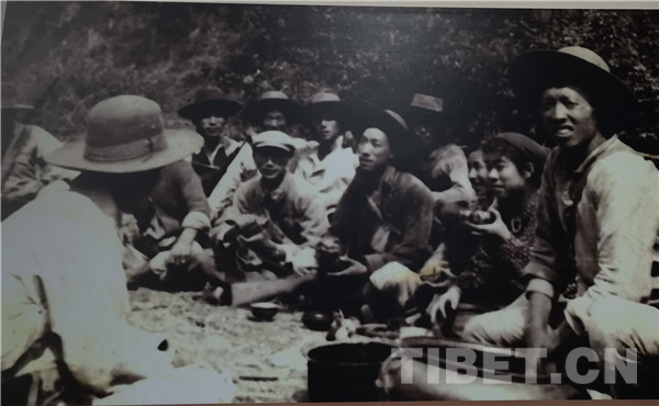 入藏途中,“維西以外至科麥段,須連續(xù)通過(guò)高山大河,該區(qū)人煙稀少,糧食困難?!眻D為羊咱的藏族同胞自發(fā)送食品慰勞援藏運(yùn)輸隊(duì)民工