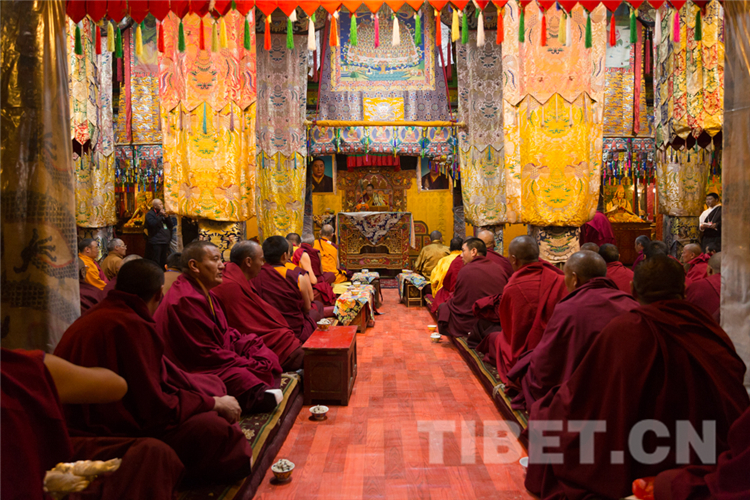圖為十一世班禪為僧眾舉行長(zhǎng)壽灌頂 攝影:王淑