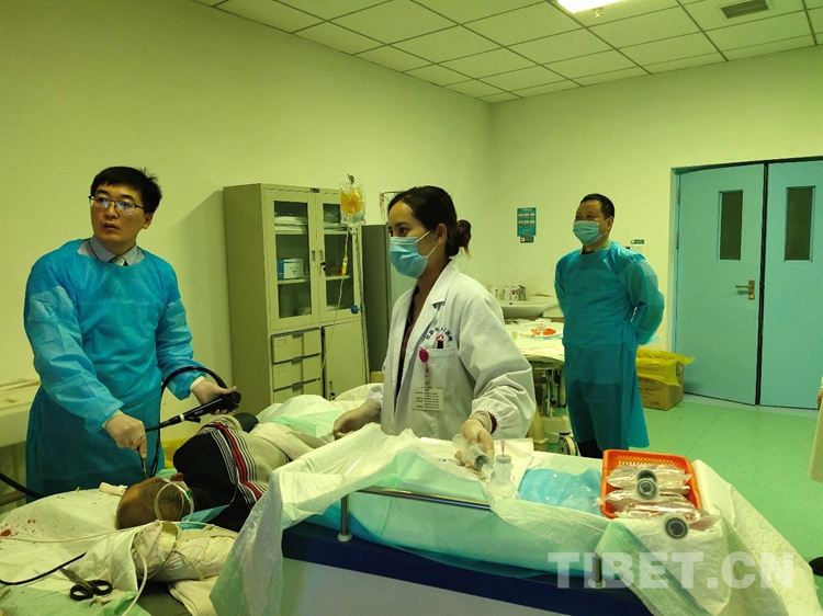 8月15日是我離京援藏整一個(gè)月的日子,我接到了來(lái)藏后第二個(gè)院際會(huì)診任務(wù)?;颊呤且晃?0多歲的中年男性,大出血,生命垂危?;颊呒韧呀?jīng)做過(guò)胃大部切除,再做手術(shù)的機(jī)會(huì)也不大,因此是否能成功止血關(guān)系到患者生死。這位患者鏡下出血很是兇猛,術(shù)后解剖結(jié)構(gòu)改變,鏡下止血很是困難,中間甚至想過(guò)放棄,但是放棄就意味著最壞的結(jié)局。