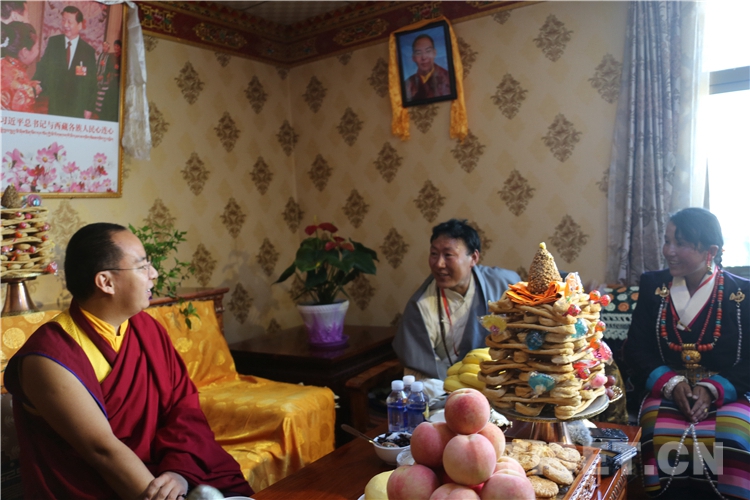 圖為十一世班禪走進(jìn)普尼瑪家中話家常 攝影:王淑