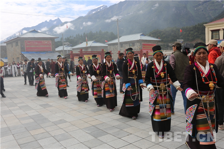 8月23日,瑪嘎村像過節(jié)一樣熱鬧,在村大壩子上群眾歡快地跳起了歷史悠久的 “同甲啦”舞,歡迎十一世班禪的到來。“同甲啦”舞是流傳了1300多年的古老民間歌舞,深受當(dāng)?shù)匕傩盏南矏邸8柙~表現(xiàn)了當(dāng)?shù)厝藗儫釔凵?、熱愛大自然、歌頌和平、歌頌友誼,唱出了家庭和睦、尊老愛幼、保護(hù)環(huán)境的樸素心愿。