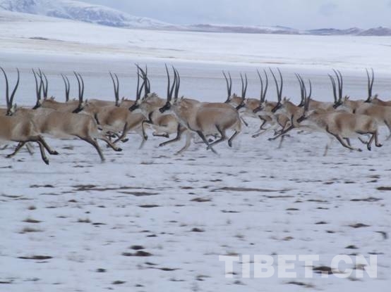 聽牧民說:天上最守紀(jì)律的是大雁,地上最守紀(jì)律的是羚羊。藏羚羊產(chǎn)羔后離開“產(chǎn)房”時的情景也很能說明這一點(diǎn)。據(jù)說,此時的公羚羊表現(xiàn)出盡善盡美的組織紀(jì)律性和崇高的責(zé)任感。數(shù)不清的公羚羊自動組織起來,同舟共濟(jì),承擔(dān)起“父親”神圣職責(zé),精心保護(hù)著母羚羊和剛出世不久的羊羔。遇到江河溪流,公羚羊首先跳下水,在下游排成屏障,保護(hù)母羚羊和羊羔過河。一旦有小羊被水沖倒,公羚羊便用身子使勁擋住它,以讓小生命爬上岸去。這種動物王國里的“父子”親情千古不變,令人感動,引人遐想。(中國西藏網(wǎng) 文、圖/唐召明)