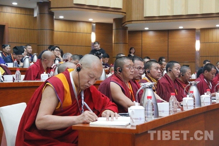圖為正在中華文化學院(中央社會主義學院)學習的西藏自治區(qū)各大寺廟的中青年經(jīng)師學員在學術論壇上認真作筆記 攝影:易文文