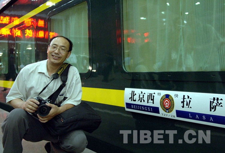 圖為2006年7月1日,唐召明報道京藏列車正式開通運營