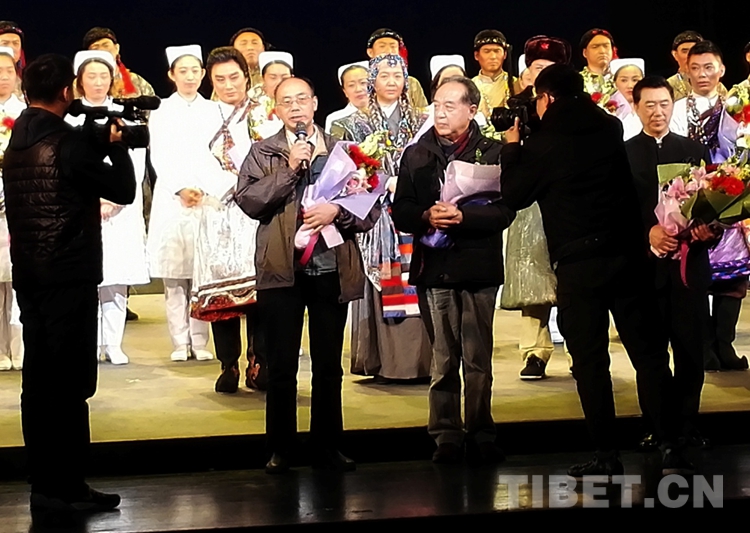 由唐召明等人策劃的評(píng)劇《藏地彩虹》在全國(guó)地方戲演出中心演出,深受好評(píng)。這是唐召明在演出后談創(chuàng)作感受。該劇援藏醫(yī)生方丹的原型是唐召明長(zhǎng)期報(bào)道的、被藏族稱為“活菩薩”的北京安貞醫(yī)院小兒心臟病專家顧虹。(唐召明提供,2017年12月10日攝)