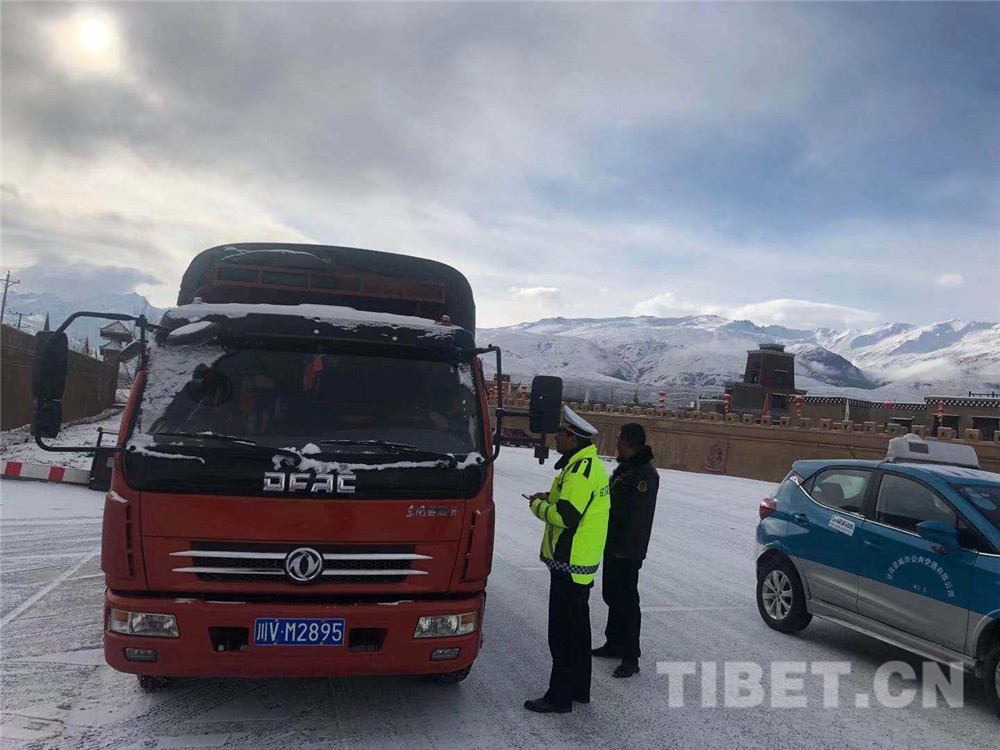 圖為甘孜縣公安交警大隊(duì)對(duì)來(lái)往車(chē)輛進(jìn)行檢查