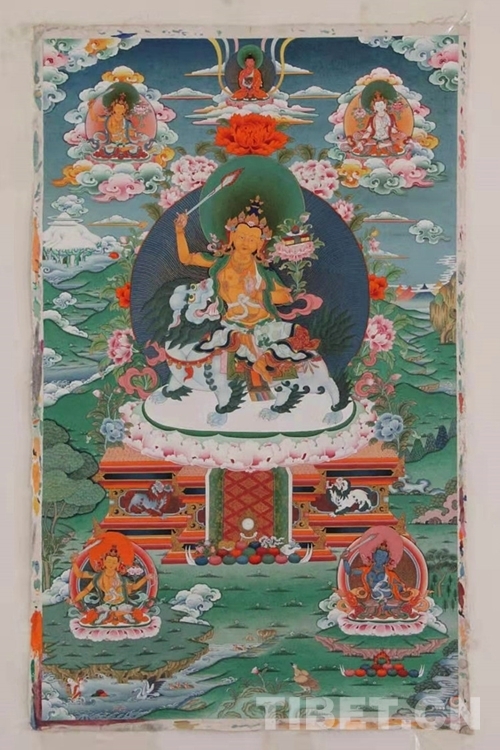 走進(jìn)曲扎的家,客廳一面白墻上并排掛著的四幅唐卡格外醒目,隱藏于作品背后的祖孫四代跨越一個多世紀(jì)的接續(xù)傳承,從他口中被娓娓道來。