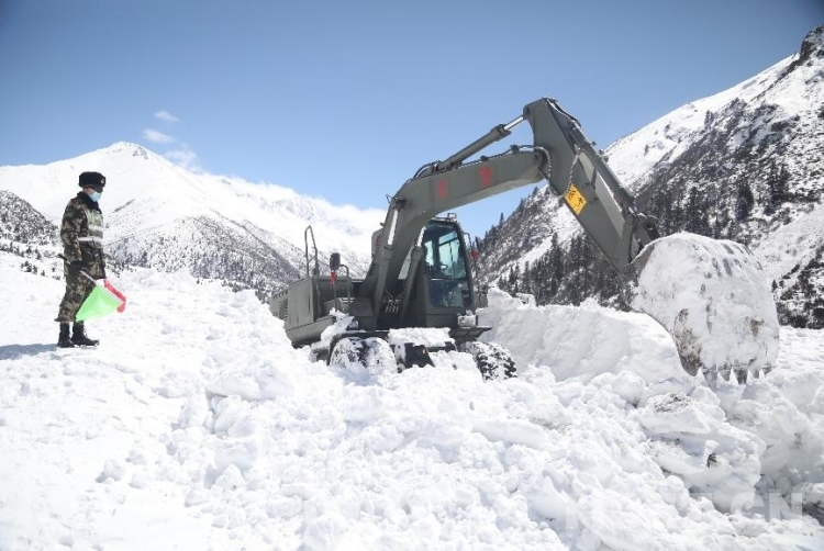 為盡快恢復(fù)通行,安全員時刻關(guān)注山體情況,確保一旦發(fā)生次生雪崩災(zāi)害能夠及時傳達(dá)撤退命令。操駕員駕駛救援機(jī)械相互協(xié)調(diào)作業(yè),快速清理路基塌方體。官兵們還給滯留群眾發(fā)放了食物。