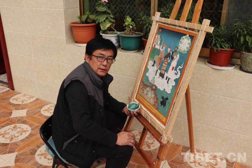 家住在西藏自治區(qū)堆龍德慶區(qū)乃瓊村的旦巴云丹是一名唐卡畫師。他師從國家級(jí)非遺傳承人、勉唐派唐卡大師丹巴繞旦,如今,已繪制唐卡30余年。新冠肺炎疫情發(fā)生以來,旦巴云丹從手機(jī)、電視等多個(gè)渠道密切關(guān)注疫情情況,這也讓他謀生出繪制戰(zhàn)“疫”主題唐卡的想法。