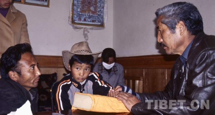 夫人給我們把酥油茶倒上,喝過幾口,旦增醫(yī)生開始給我診脈。雙眉微蹙,凝神靜氣,我大氣也不敢出。目光移到他手上戴著的半截指手套,覺得很親切,我因?yàn)楣ぷ髦幸獙懽骱团臄z,所以我也喜歡戴半截指手套,而且當(dāng)時我和旦增醫(yī)生戴的是同款。后來我見過他多次,不管什么季節(jié),他總戴著半截指手套,才發(fā)現(xiàn)另有原因,這是后話。