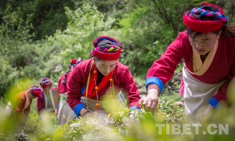 圖為勒鄉(xiāng)村民正在錯(cuò)那縣勒門(mén)巴民族鄉(xiāng)茶葉農(nóng)牧民專(zhuān)業(yè)合作社內(nèi)采摘茶葉 攝影:趙耀
