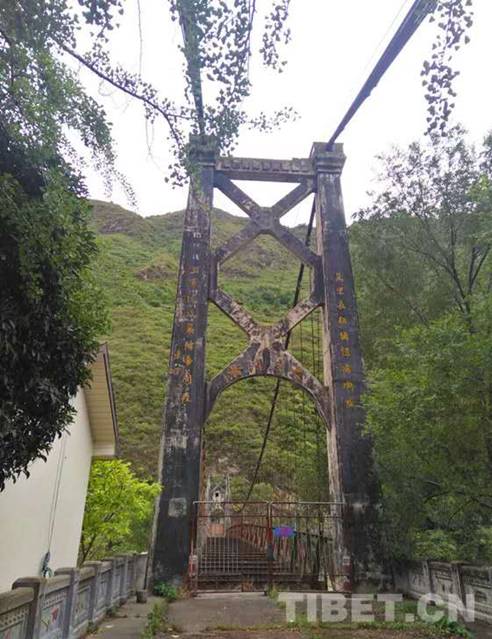 母親眺望遐思的一剎那,汽車已到大渡河橋前,車停了下來??匆姌蝾^上方環(huán)形鐵架上赫然鐫刻著四個蒼勁有力的大字“大渡河橋”,大字正上方釘著一個鮮艷的巨型“五角星”。母親猛然情急地問:“怎么這座橋不是瀘定橋嗎?怎么與我們課本上說的不一樣?”年輕的司機爽朗地笑著說:“這座橋位于距離瀘定橋上游500米處,1950年,進軍西藏的十八軍,在‘一面進軍,一面建設(shè)’的號召下,為跨越大渡河天塹,又在水流湍急的大渡河上修建了第一座公路大橋——大渡河橋。大橋于1951年6月建成通車,西南軍區(qū)軍政委員會主席劉伯承揮筆寫下了‘大渡河橋’幾個遒勁有力的大字?!彼緳C一邊招呼著母親下車,一邊接著又說道:“你瞧,橋頭楹聯(lián)是朱德總司令題寫的:‘萬里長征猶記瀘關(guān)險,三軍遠戍嚴防帝國侵?!?/p>