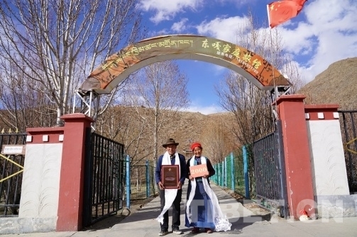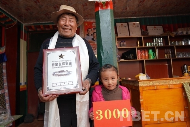 圖為瓊結(jié)縣普布旦增家經(jīng)營的雪康桑家庭旅館榮獲“銀星”家庭旅館 攝影:曲杰